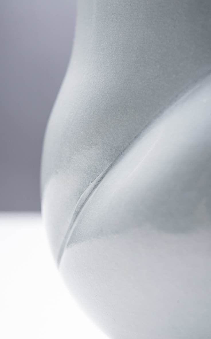 I think that over my career as the vessels became more personal and distorted and abstracted, the forms needed to be finished with surfaces and colors which did not fight or distract with them in any way. On close inspection the Black and Bronze glazes actually have very complex surfaces, but the overall impression if of a united finish with the form and contours. That is really important. The celadon (green) glazes are classic Chinese recipes; a long tradition precedes these pieces – the marriage of this finish with the Body (Porcelain). I am currently testing some new glazes and colours, but they will only be used if they reliable enough to be repeated, and are absolutely right for the form. More testing to do for now…